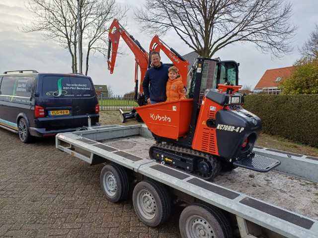 Zojuist door Ruiter Hoveniers uit Waarland opgehaald een nieuwe Kubota KC70SL-4P rupsdumper.